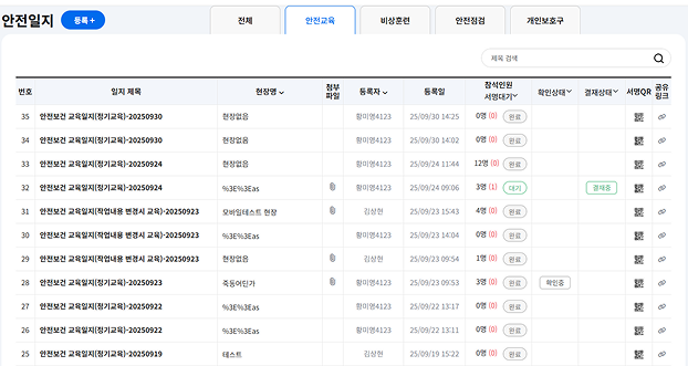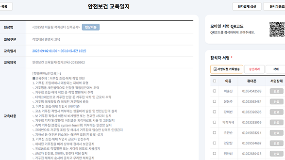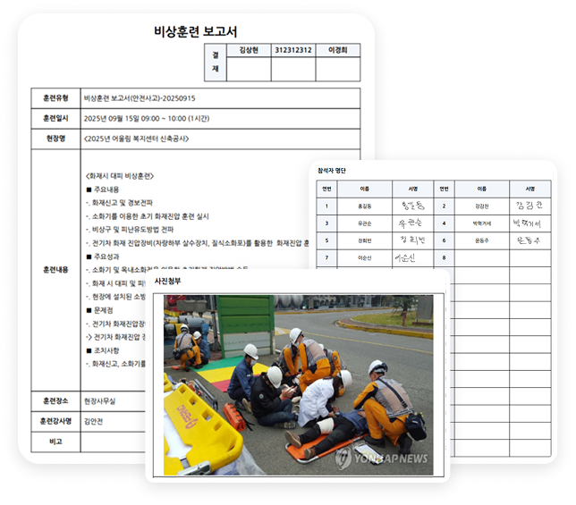 훈련 일시·장소·참석자 정보를 현장별로 기록해 공백 없는 관리가 실현됩니다.