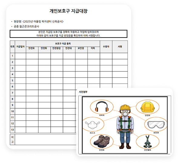 법정 의무 이행과 현장작업자의 안전 확보를 동시에 실현합니다.