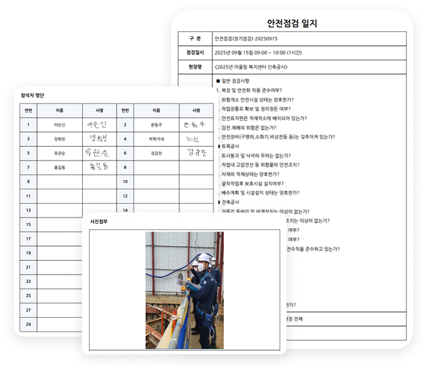 누락 없는 기록 관리로 현장 안전문화를 강화하세요.