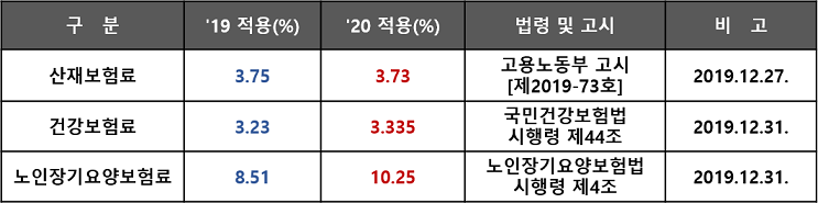 법정 고시율 변경(국민건강보험법 시행령 제44조, 노인장기요양보험법 시행령 제4조, 2019.12.31.)