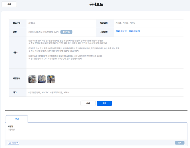 현장의 작업과 이슈를 실시간으로