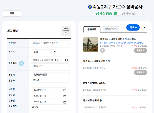 공유하고 스마트한 공사 관리를 실현합니다.
