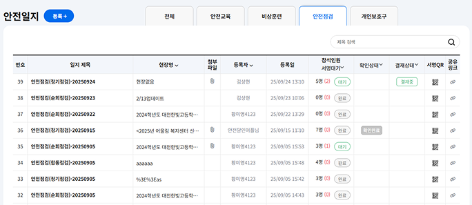PDF로 저장·정리되어, 각종 점검 및 대외 감사에도 빠르게 제출 가능합니다.