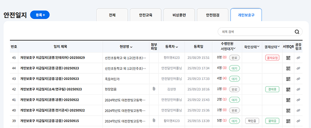 개인보호구의 지급·수령 이력을 디지털로 관리해