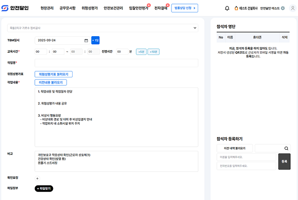 모든 TBM 점검 결과는 모바일 일지에 실시간 기록되며,